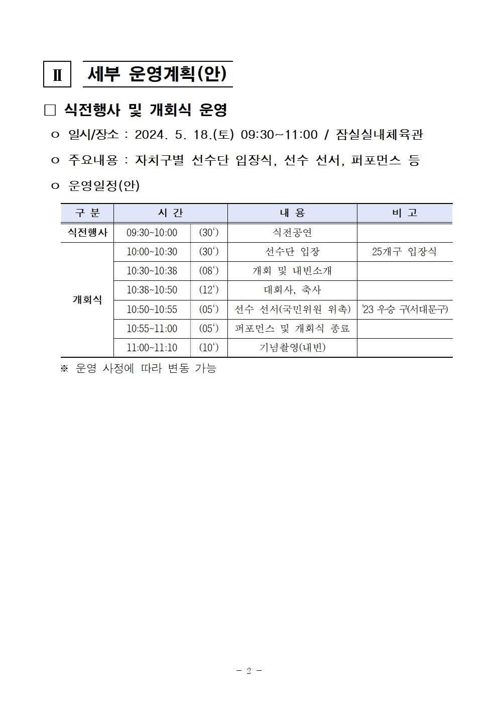 2024 서울시민체육대축전 개최 계획 (안내)