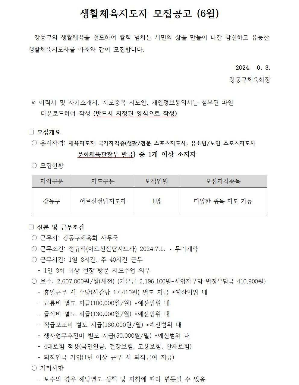 2024년 6월 생활체육지도자 모집공고